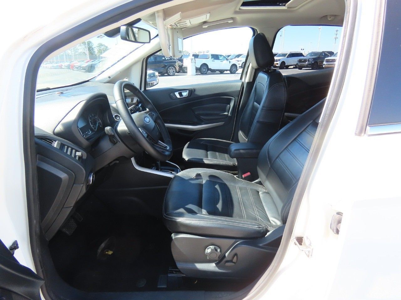 Why over pay? This is one of the best values around. Ride in style with this 2018 EcoSport's fabulous leather seating. Premium 'turn-by-turn' navigation system included. There's nothing like a sunroof on a sunny day! The SUV has an EPA estimated fuel rating of 28 MPG combined. You'll also love this vehicle's backup camera, power mirrors, security system, Bluetooth enabled and an air filter for the cabin.